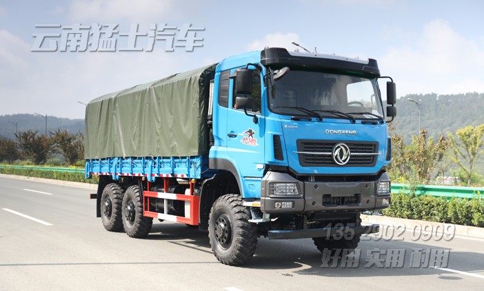 東風(fēng)六驅(qū)340馬力出口卡車_6*6帶蓬布篷桿的貨運卡車_長途貨車剎車降溫水箱
