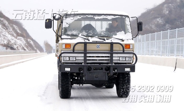 帶有防護(hù)欄、冷啟動(dòng)、工具箱、后窗防護(hù)網(wǎng)等附加裝置,整車在-41℃環(huán)境溫度下能順利啟動(dòng)。