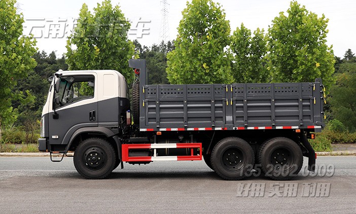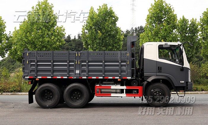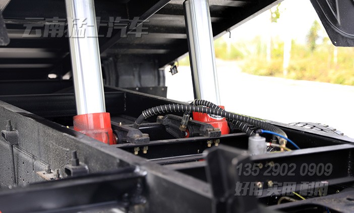 東風(fēng)2.5噸輕型自卸車采用EQ240同款底盤,有著出色的越野性能。貨箱采用五開門結(jié)構(gòu),中置頂雙液壓油缸舉升,左右邊板可向下翻開,或向前方帶有爬梯,側(cè)邊裝有剎車將溫水箱,方便承載重物長(zhǎng)途運(yùn)輸。