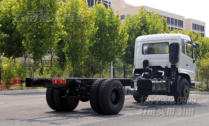 東風(fēng)4x2 260馬力卡車底盤,軸距5米,后方有6400mm的預(yù)留改裝空間。