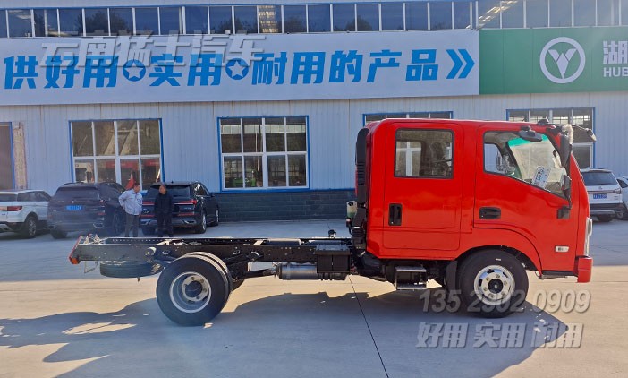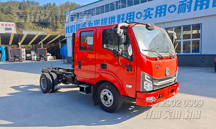 4*4東風(fēng)小輕卡雙排座底盤(pán)(可選4*2驅(qū)動(dòng)),4*4適合于惡劣路段下使用,越野性能強(qiáng);4*2適合于城鎮(zhèn)道路下使用,輕便節(jié)能。可根據(jù)客戶(hù)需求進(jìn)行改裝加裝。