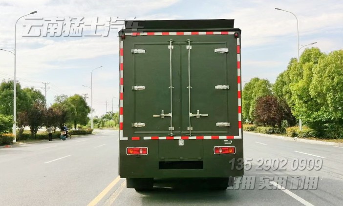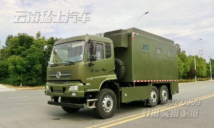 東風(fēng)自行式戶外炊事車,該車配備190馬力發(fā)動(dòng)機(jī),六輪驅(qū)動(dòng),可在惡劣路況下形式,主要針對戶外露營、野外訓(xùn)練中就餐使用,最多可容納200人就餐。