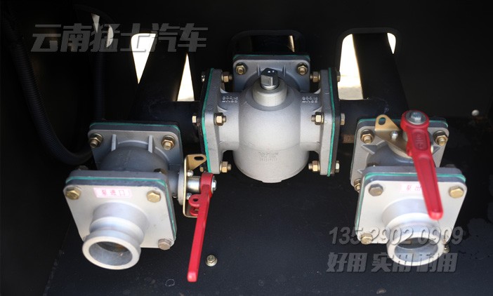 車尾帶有爬梯,可以通往罐體頂部。罐體頂部平臺(tái)兩側(cè)帶有折疊安全扶手,罐體頂部中間帶有注水口。