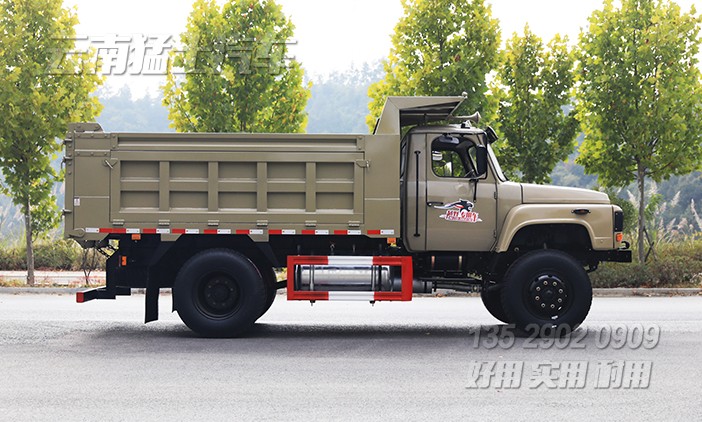 四驅(qū)尖頭小型越野自卸卡車是由東風(fēng)EQ1093改裝而來,根據(jù)用戶的需求縮短了軸距,4x4分時驅(qū)動,體積小巧,適合運輸渣土砂石。