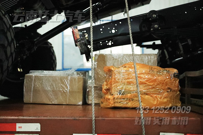 由于三類底盤沒有駕駛室,故無法正常在公路上行駛,因而我們采用了背運的方式,經計算一輛半掛車可以背5輛。因為儀表臺裸漏在外,路上可能受到風雨淋濕,所以我們做了防水包裝,同時物流在運輸過程中也搭載了篷布。
