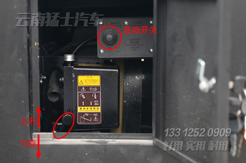 該備胎架采用電動液壓舉升機構(gòu),只需通過按鈕就可以完成舉升。