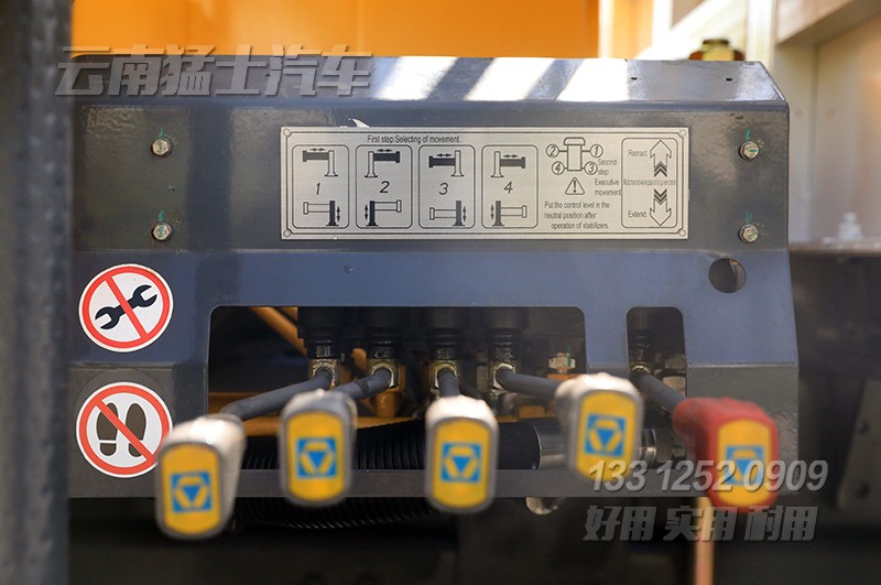 考慮在戶外工作環(huán)境不定,在吊裝作業(yè)時可能存在盲區(qū),所以該車設(shè)置了多個操作區(qū)域,確保吊裝作業(yè)時的安全。