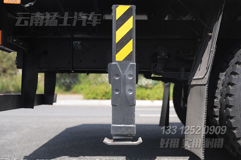 第二步:通過操縱桿將車輛的四個支腿伸出下降,穩(wěn)固支撐在地面,四個支腿和車輪保持齊平,讓車輛處于水平狀態(tài)。
