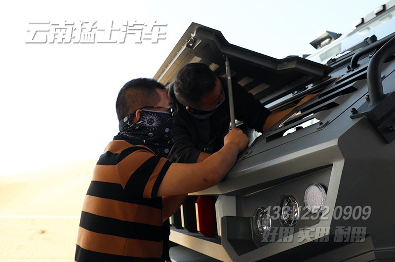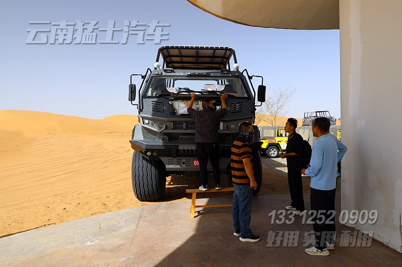 該車輛雖然體型龐大,但依然阻擋不了風(fēng)沙,在長期的行駛過程中各個(gè)零部件難免受到風(fēng)沙侵蝕,對一些細(xì)小部件造成一些磨損。我公司生產(chǎn)人員對每輛沙漠車的各個(gè)易損部位進(jìn)行檢修,及時(shí)的清理底盤內(nèi)的沙粒,確保五一假期期間客戶能夠順利使用。同時(shí)也將易損部位進(jìn)行記錄,后續(xù)的設(shè)計(jì)也會(huì)考慮增加防護(hù)設(shè)施,增加車輛的使用壽命。